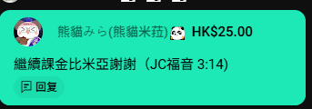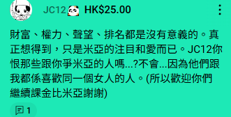 在一次會員直播的時候JC12大教主院友卑左個Superchat如下圖